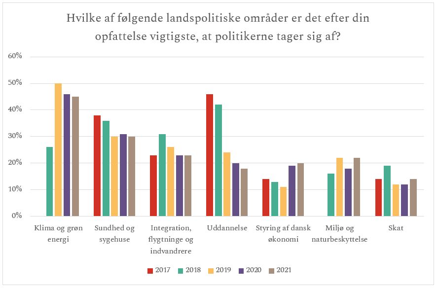 Næsten halvdelen af de unge markerer klima som det vigtigste område for politikerne at tage sig af. Især hos unge i yderkommunerne er klima en politisk topprioritet. Klimadagsordenen er altså langt fra isoleret til de unge i de store byer.