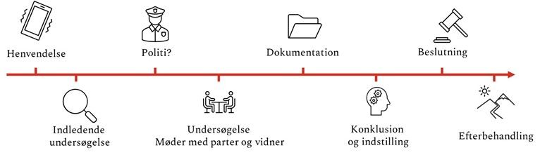 Det er ikke muligt at forberede sig på alle tænkelige scenarier og sager, som kan opstå. Det centrale at forberede og kommunikere er, hvordan en henvendelse håndteres og hvordan processen for at behandle henvendelsen ser ud. På den måde sikres tryghed for alle parter omkring, at sagens behandles på en god måde. I det følgende beskrives et forslag til en proces, som tager højde for de fleste typer af sager, der kan opstå.